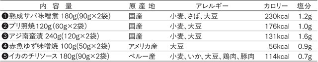 ブリ照焼:表記240g(120g×2袋) → 正しくは120g(60g×2袋)