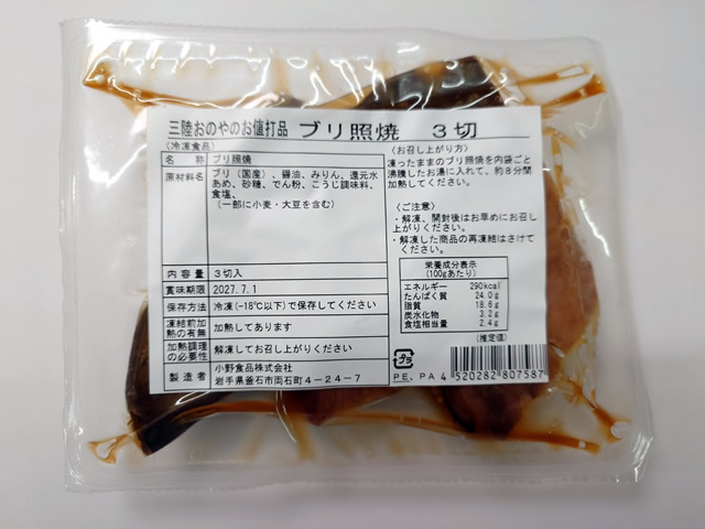 原材料名/ブリ、醤油、みりん、還元水あめ、砂糖、でん粉、こうじ調味料、食塩